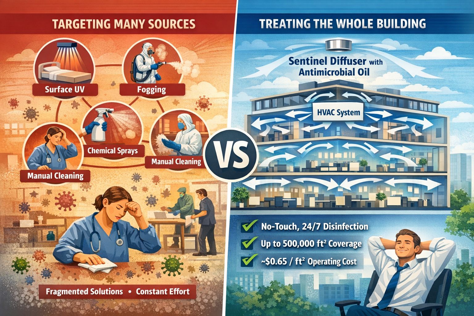 Discover how Scentinel transforms your indoor environment by integrating thyme oil vaporization into your HVAC system for continuous air purification.